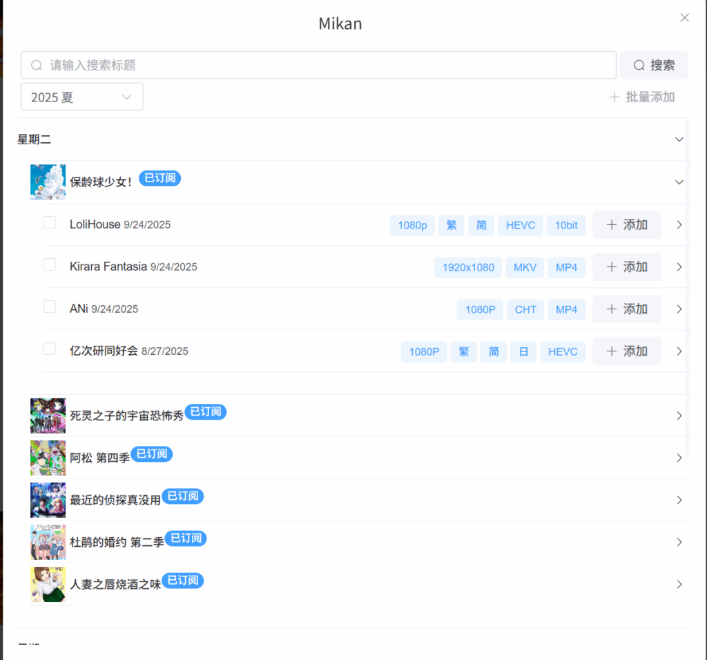 点mikan可进入番剧订阅页面,个人推荐优先订阅萝莉屋,在用ANI字幕组做替补。